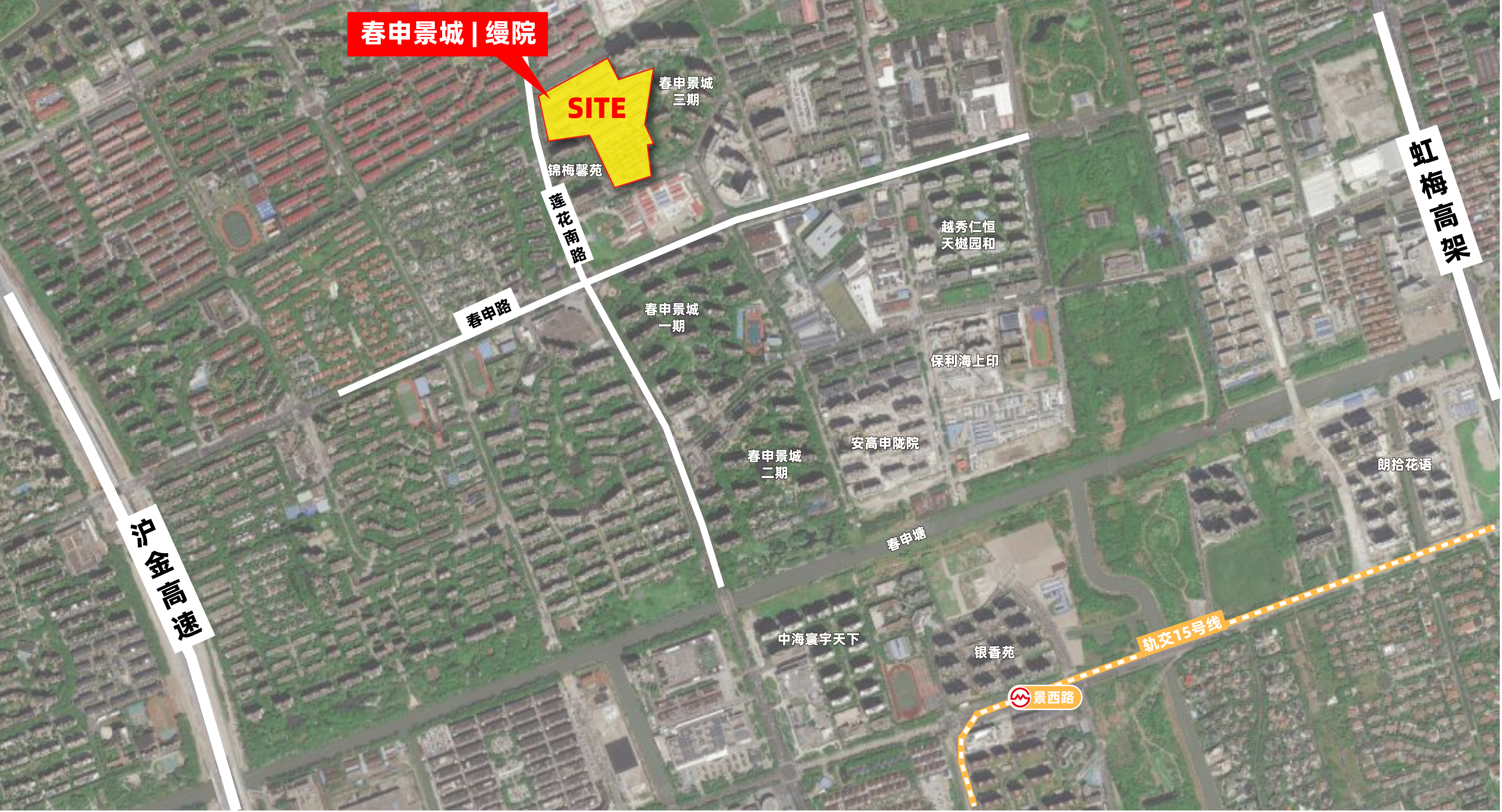 【交通配套】:项目距离15号线约2公里。周边高架有S20外环高速,S4沪金高速,虹梅高架路等,主干路纵有莲花南路,横有春申路,自驾非常便捷。【商业配套】:项目一期西侧就是大润发。其他几个商业都在小区的南侧。有麦多生活广场和欧亚美家居生活广场。以及新商业海梦一方。三个商业围绕在15号线周围。【教育配套】:附近有闵行区春申景城幼儿园、闵行区实验小学、莘松中学等多所学校,教育资源丰富。(新房不承诺对口学区,以每年教育部门公布为准)【医疗方面】:周边有直线距离约500米的复旦大学附属华东医院闵行门诊部为健康保驾护航。【生态方面】:小区北侧的休闲绿地比较多,有集心公园、叠翠园、闻翠园等。