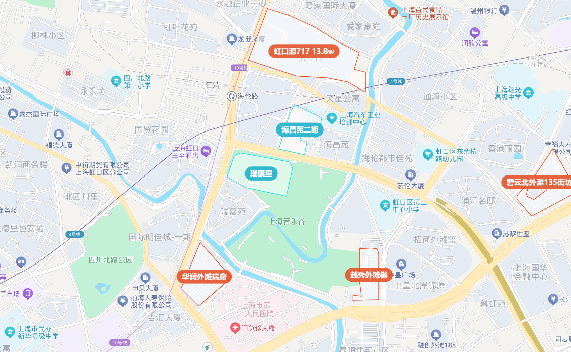 【交通配套】:项目附件有3/4/10/12/19多条轨交环绕,距离最近的4/10/19号线(海伦路)约220m。【商业配套】:周边商圈环绕,有1933购物中心,嘉宏印象荟,利通广场,虹口宝华商业广场,瑞虹新天地,SMP上海白玉兰广场,上海苏河湾万象天地(福建北路店),新世界新丸中心NEW ONE,上海静安大悦城等。【教育配套】:天水路小学,虹口区第二中心小学,四川北路第一小学,上海市虹口区教育学院实验中学,上海继光高级中学,上海音乐学院北虹高级中学,虹口区第三中心小学(吉祥校区),朝阳中学等[仅列举项目周边学校名称,不作对口承诺,学区划分最终以教育局公布为准」。【医疗配套】:上海市第一人民医院,上海市中医医院,上海市第十人民医院(虬江路院区),上海市中西医结合医院,上海交通大学医学院附属仁济医院(西院),上海市东方医院(总院),上海交通大学医学院附属新华医院等。